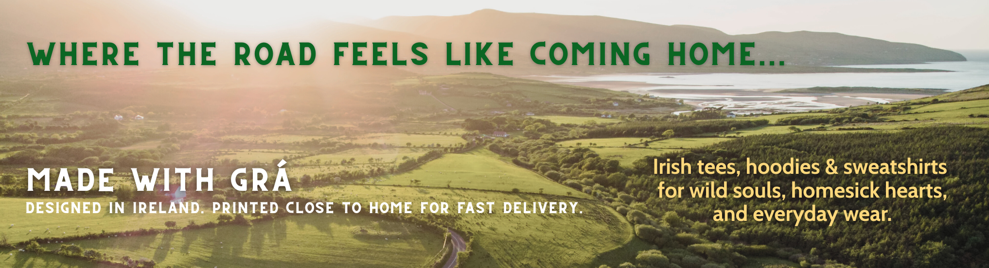 We’re a small Irish design studio with a big grá for home, humor, and heritage. Our t-shirts, stickers, and gifts are designed here in Ireland and printed as close to ewe (yes, ewe) as possible to keep things sustainable and sound.